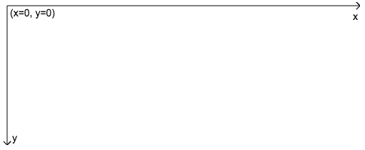 Le repérage dans le canvas se fait par les coordonnées cartésiennes (x, y) avec l'origine (0, 0) en haut à gauche